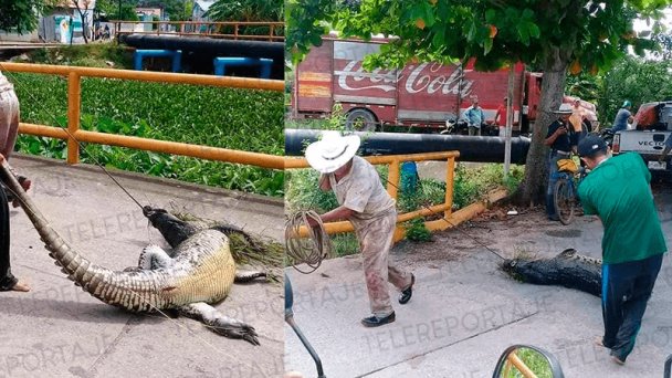 Pobladores de la Villa Tepetitán, Macuspana, capturaron este miércoles un cocodrilo de casi 2 metros de longitud, con la intensión de prepararlo como alimento.