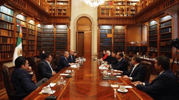 El secretario de Gobernación, Adán Augusto López Hernández, y la cúpula del Partido Acción Nacional (PAN), encabezada por su dirigente Marko Cortés, llevaron a cabo una reunión en la biblioteca del conjunto Bucareli, donde se acordó que a partir del 10 de enero de 2022, se pondrán en marcha mesas de diálogo que permitan fortalecer la unidad nacional.