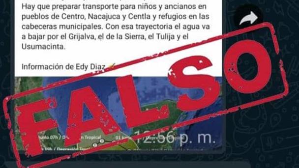 “En últimas horas el ex gobernador Andrés Granier se ha dedicado a propagar y difundir información falsa sobre una supuesta inundación en Tabasco, derivada de lluvias en Guatemala y Chiapas. Tabasqueño no hagas caso a quienes irresponsablemente se dedican a propagar noticias falsas”, expusieron en la publicación.