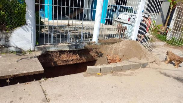 Miraldelly García agregó que el hueco ha bloqueado parte del acceso de su casa y además es un riesgo para los estudiantes de bachillerato.