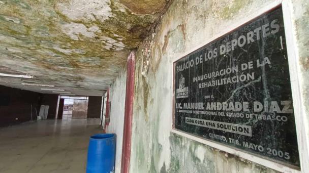 La falta de atención y mantenimiento han causado que el Palacio de los Deportes en Villahermosa, esté agonizando en parte de su infraestructura.