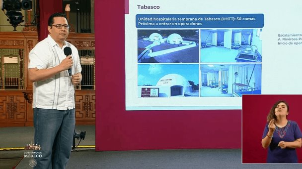 “El tema de Tabasco, cómo en la semana se había estado trabajando intensamente con este estado, las dependencias federales de la mano de las autoridades estatales, estamos hablando tanto del INSABI, como de la SEDENA, como del IMSS, como del ISSSTE, han estado trabajando intensamente con las autoridades para poder llevar a cabo la reconversión, la expansión, de hecho el día de ayer (viernes) se llevó a cabo ya una escalamiento del hospital regional de alta especialidad “Dr. Gustavo Rovirosa Pérez”, en donde se activaron 100 camas, esto va a impactar de manera importante la disponibilidad, de seguro mañana cuando veamos el corte de Tabasco nuevamente, veremos muy probablemente incrementada esta disponibilidad, pero además también vean cómo Tabasco ha trabajado arduamente durante esta semana, para poder tener lista la unidas hospitalaria temprana, que aportará 50 camas”, enfatizó.