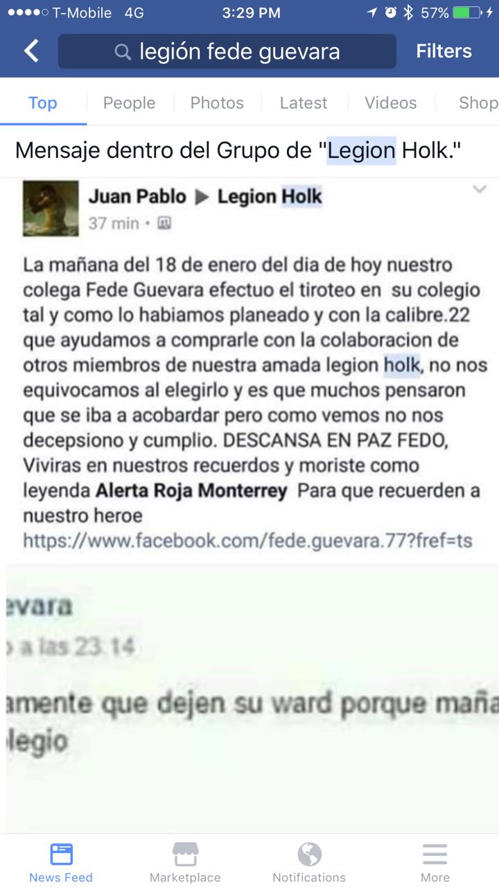 Luego del hecho donde un joven de secundaria de 15 años disparó contra sus compañeros y una maestra en el Colegio Americano de Noreste en Monterrey, en redes sociales circulan mensajes de un grupo de Facebook que se hace llamar Legión Holk.