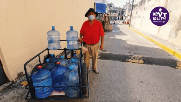 “Soy el único, quisiera yo dar la talla, soltarla, pero la gente a veces me pide porque a veces se va el agua y ya me compran, me hablan por teléfono y tengo que surtirle, llevárselo a su domicilio, más allá del negocio es una responsabilidad, exactamente, pues le voy a ser franco, ahorita cuando mucho me puedo vender 20, de ahí no pasa, porque le vuelvo a repetir, hay mucho consumo, mis compañeros prefieren comprar el agua rellenable, yo paso y a veces no están en su casa, se fueron a trabajar y yo nada más doy dos vueltas”, dijo.