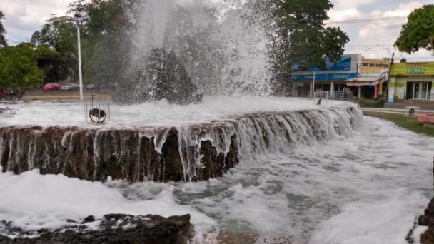 La Fuente Maya de Villahermosa fue vandalizada ayer, pues vertieron en ella detergente.