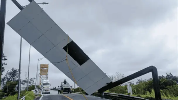 La tarde de este domingo, la circulación fue interrumpida en la Carretera Federal 180 a la altura del Puente Coatzacoalcos I, luego que una estructura cayera sobre la vía de comunicación por los fuertes vientos del frente frío No. 27.