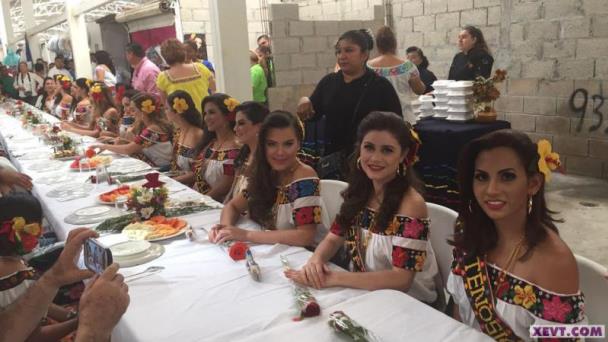 Recibidas con confeti, pancartas y porras, 16 de las embajadoras de los municipios disfrutaron de un desayuno en compañía de los locatarios del mercado más importante de Villahermosa.