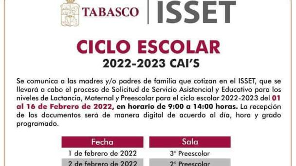 El Instituto de Seguridad Social del Estado de Tabasco (ISSET), abrió el proceso de inscripción en sus Centros de Atención Infantil (CAI).