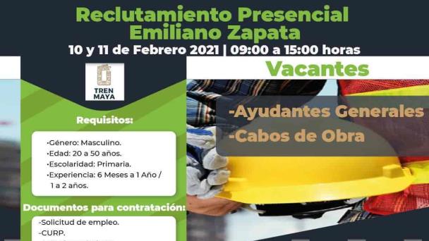 El Servicio Nacional de Empleo (SNE) Tabasco, informó que del 10 al 12 de febrero, se llevará a cabo el reclutamiento para los interesados en trabajar en las obras del Tren Maya.