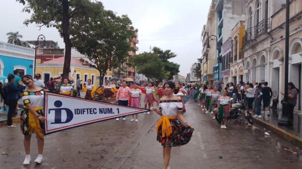 Pese a la cancelación de última hora, y aunque en ese momento se registraba una ligera llovizna, alumnos del Instituto de Difusión Técnica (Idiftec) número 1 llevaron a cabo el acto que tenían ensayado para participar en el desfile del 20 de noviembre, conmemorativo del 112 aniversario del inicio de la Revolución Mexicana.