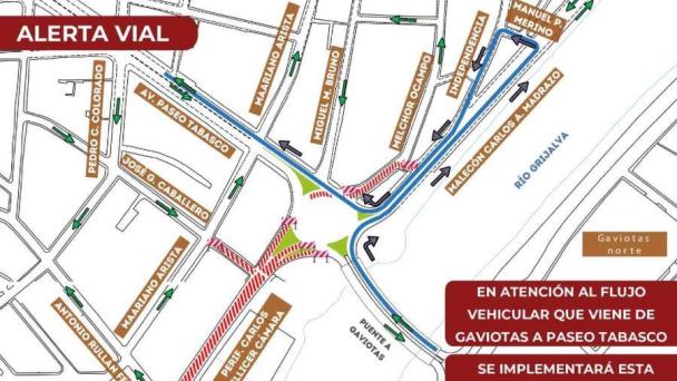 Anuncian ruta alterna para agilizar flujo vial de automovilistas provenientes de Gaviotas hacia Paseo Tabasco
