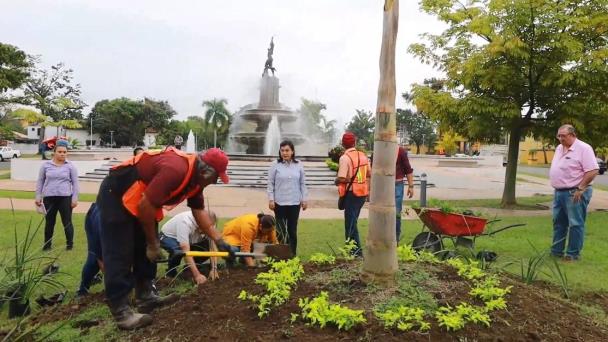 La presidenta municipal de Centro, Yolanda Osuna Huerta, dio inicio al Programa de Reforestación de Espacios Públicos con la siembra de la primera reproducción de plantas de ornato cultivadas en el vivero municipal del parque La Pólvora.