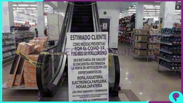 En el caso de la tienda Del Sol, cerraron los accesos a las áreas de productos no esenciales, además que bloquearon las escaleras eléctricas y colocaron un cartel para explicarle a sus clientes que “por disposición oficial se encuentra restringida la venta de artículos en los departamentos de ropa, juguetería, electrónica, papelería, hogar y zapatería, los días sábado y domingo”.