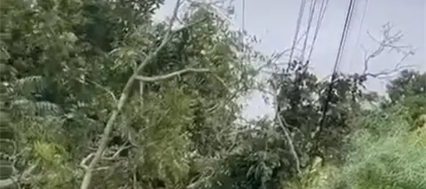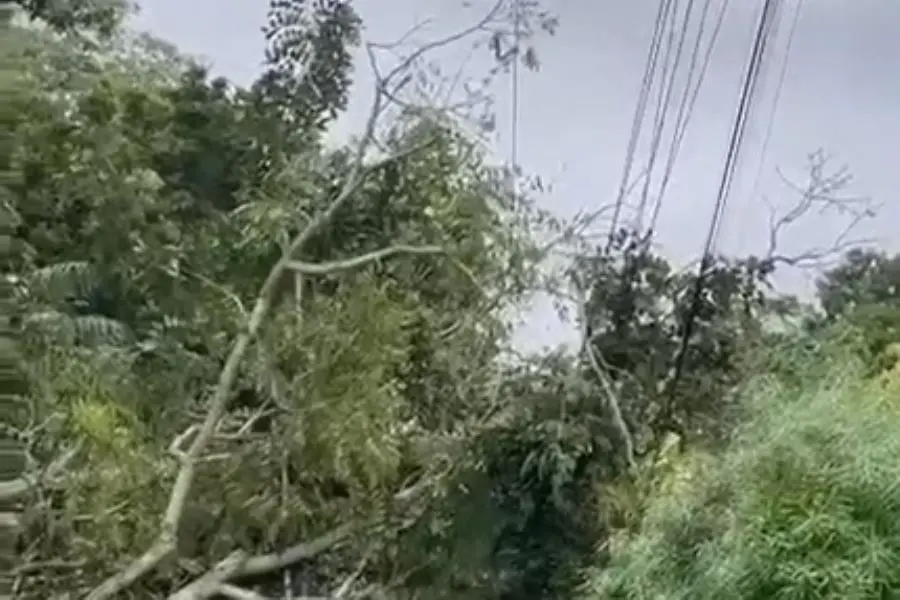 Este martes, habitantes de la ranchería La Cruz de Jalpa de Méndez documentaron la caída de un árbol sobre líneas de alta tensión.