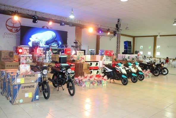 Durante los festejos se realizó la rifa de pantallas planas, minisplits, refrigeradores, estufas, lavadoras, canastas navideñas y otros electrodomésticos.