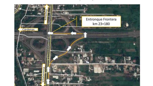 Los automovilistas que hacen uso de esta vía, podrán circular hacia Cárdenas por la carretera Francisco Escárcega - Villahermosa a través del Entronque La Manga y por la carretera Villahermosa - Frontera por el Entronque Frontera, siguiendo las indicaciones de los señalamientos preventivos de obra, manejando con precaución y respetando las señales en todo su trayecto.