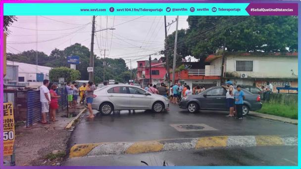 Habitantes de la colonia Casa Blanca mantienen bloqueada la calle río Mezcalapa en inconformidad por las anegaciones que presentan sus viviendas tras las lluvias de las últimas horas.