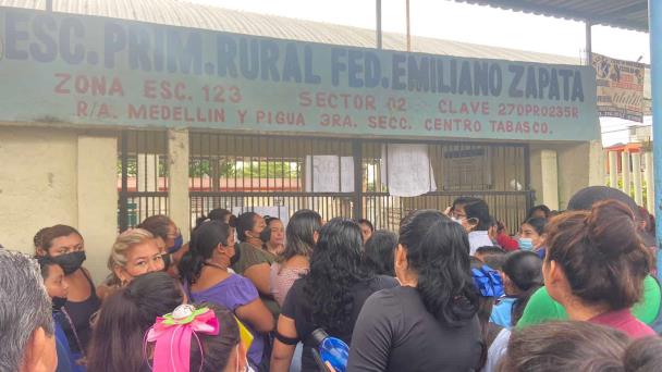 Padres de familia de la primaria “Emiliano Zapata” de la ranchería Medellín y Pigua tercera sección del municipio de Centro, cerraron este lunes la escuela en reclamo por la suspensión de un maestro de tercer grado.