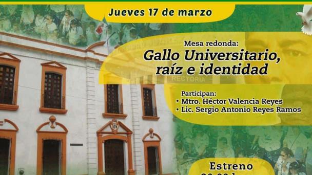 La última actividad del día, a las 8:00 de la noche, será la mesa redonda “Gallo Universitario, raíz e identidad”, en la que participarán el maestro Héctor Valencia Reyes y el abogado Sergio Antonio Reyes Ramos.