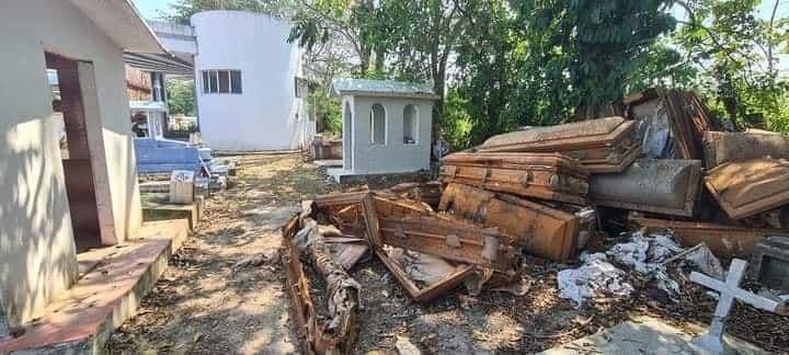 A través de redes sociales, habitantes de Cunduacán denunciaron que el panteón municipal se encuentra en condiciones deplorables, ya que existe un gran número de ataúdes, restos de ropa y hasta zapatos tirados, además de que se pueden observar algunos residuos sobre las bóvedas.