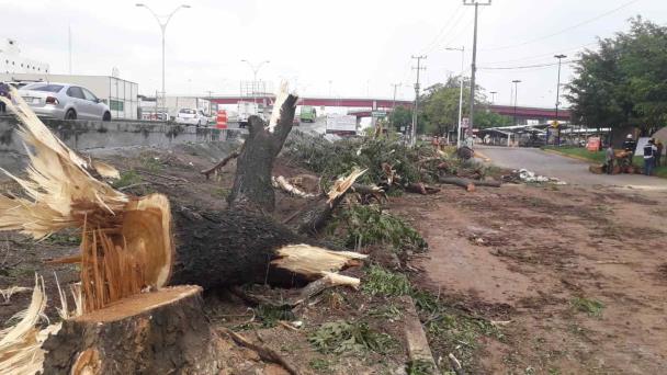 Durante la semana pasada y hasta ayer martes, personal de empresas particulares realizaron el derribe de los árboles que estaban en Ruiz Cortines a la altura de la cadena comercial Walmart Universidad, así como del otro lado frente a la Macro Plaza.