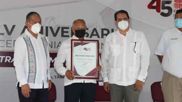 Con una ceremonia solemne en donde se hizo entrega de reconocimientos a personal con más de 30 años de servicio, concluyó este viernes la semana de actividades del 45 aniversario del Colegio de Bachilleres de Tabasco (Cobatab).