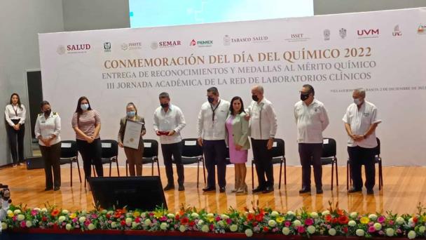Además, los químicos fármaco-biólogos Alma Rosa González Hernández y Víctor Alfredo Torres, recibieron la medalla y pergamino al Mérito Químico en Docencia e Investigación, así como al mérito en trayectoria y desempeño, respectivamente.