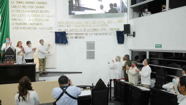 Lo anterior se llevó a cabo durante la Sesión Solemne de la Sexagésima Tercera Legislatura (LXIII), como un homenaje permanente a la institución que coadyuva a salvaguardar la seguridad del país, en presencia del gobernador Adán Augusto López Hernández; del magistrado presidente del Tribunal Superior de Justicia, Enrique Priego Oropeza; del Vicealmirante Gabriel Pablo González Contreras, Comandante de la V Zona Naval; del General José Fausto Torres Sánchez, Jefe de la 30ª Zona Militar; así como de integrantes de las fuerzas armadas y de funcionarios estatales.