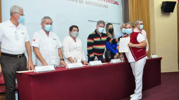 El Instituto de Seguridad Social del Estado de Tabasco (ISSET), llevó a cabo la entrega de bases a 121 trabajadores eventuales mayor a cinco años de antigüedad.