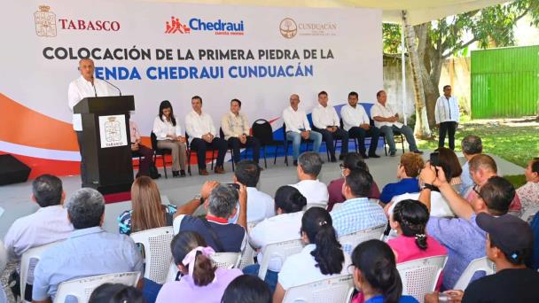 Ayer se colocó la primera piedra del supermercado que el Grupo Chedraui construirá en Cunduacán, con una inversión superior a 150 millones de pesos.