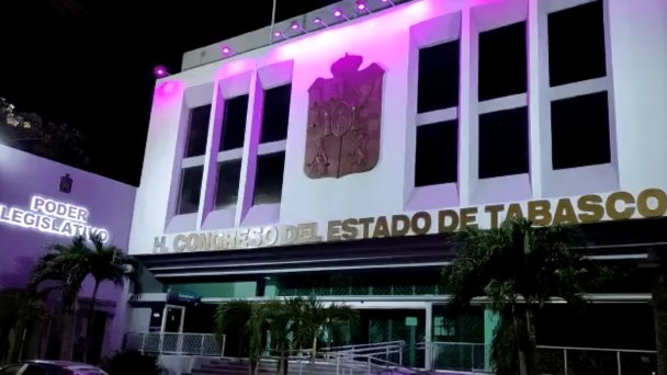 Edificios públicos de la capital tabasqueña lucieron su iluminación color morado en el marco del Día Internacional de la Mujer.