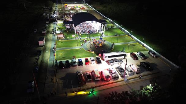 Por su parte, la Arquitecta Karla Nohemí Vinagre Ruiz, directora de Obras Públicas, realizó la explicación técnica del proyecto ejecutado hasta el momento, el cual consistió en la construcción de: Un estacionamiento, banquetas, área de juegos infantiles, andadores, cancha de usos múltiples techada, cancha de básquetbol, gradas, reflectores, cancha de voleibol, gimnasio al aire libre y cancha de fútbol.