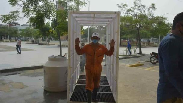 Instalan túneles sanitizantes en Paraíso, pese a recomendación de la Secretaría de Salud