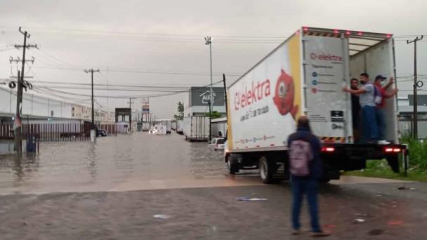 Las intensas lluvias de las últimas horas en Tabasco, ocasionaron anegaciones en la zona de Ciudad Industrial, dificultando el tránsito de vehículos pequeños y de transeúntes.