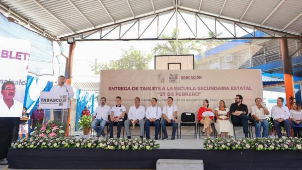 El gobernador, Javier May Rodríguez hizo entrega de las primeras 475 tablets con la plataforma Khan Academy para estudiantes de la secundaria 27 de Febrero, de Comalcalco, proyecto que busca mejorar el aprendizaje y desarrollo escolar.