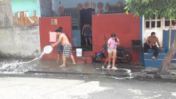 A través de redes sociales, el delegado Heriberto Sánchez Zepeda, publicó fotos de los ciudadanos lavando sus aceras, y señaló que en su mayoría, lo hicieron con agua que habían utilizado el día anterior para lavar ropa.