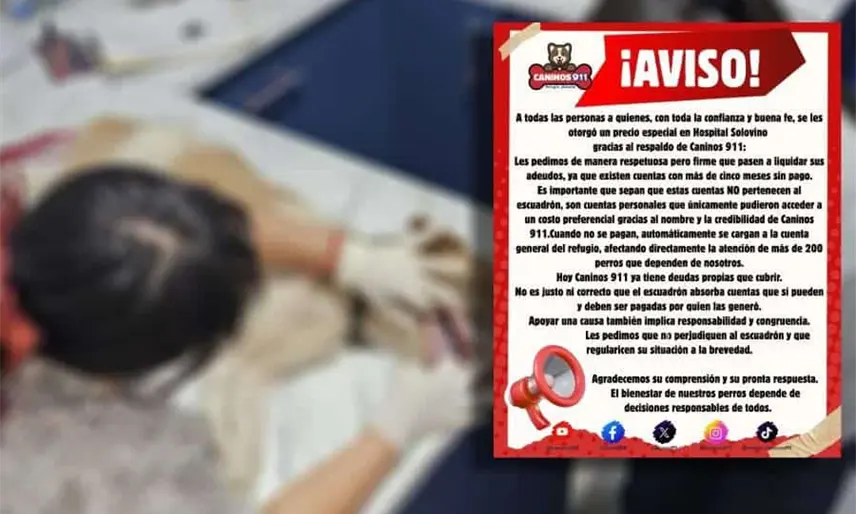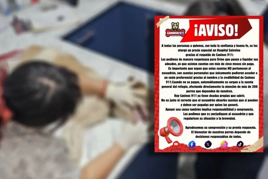 "Les pedimos de manera respetuosa pero firme que pasen a liquidar sus adeudos, ya que existen cuentas con más de cinco meses sin pago. Es importante que sepan que estas cuentas no pertenecen al escuadrón, son cuentas personales que únicamente pudieron acceder a un costo preferencial gracias al nombre y la credibilidad de Caninos 911", escribieron en sus redes.