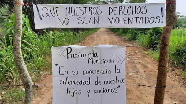 Este viernes, desde muy tempranas horas, más de 15 personas colocaron pancartas con consignas a la entrada principal del predio que el Ayuntamiento de Nacajuca está habilitando para enviar los desechos a la zona, debido a que ya no se pueden seguir llevando en el predio anterior, porque no se ha podido sofocar el incendio que inició desde el pasado 20 de marzo.