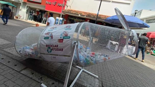 Como parte de la campaña “Reciclar es Ayudar”, el DIF Tabasco colocó contenedores para recaudar botellas de plásticos de refresco o agua, en algunos puntos de la ciudad de Villahermosa.