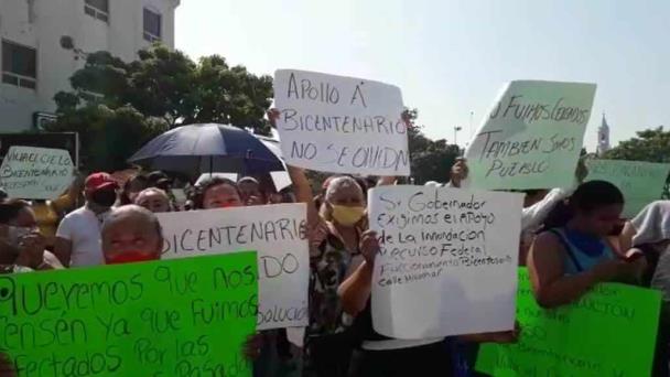 Protestan habitantes de Bicentenario y Villa El Cielo frente a Palacio de Gobierno