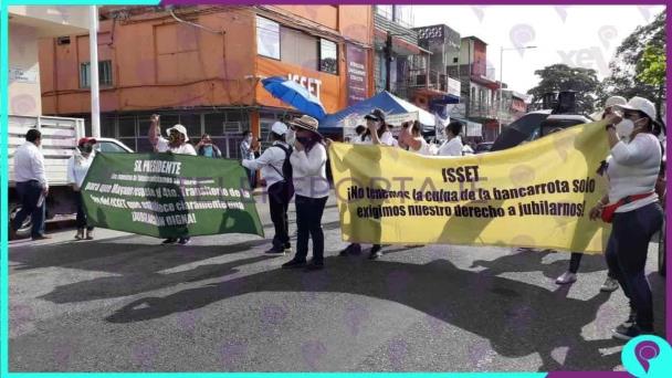 “Un grupo de maestros que estamos en una lucha por una jubilación digna, tenemos más de dos años en esta lucha, y el gobierno no nos ha permitido jubilarnos y el doctor Mayans ni siquiera nos da la cara. - ¿Qué tipo de trabas les pone el ISSET? - Primero que nada nos dicen que no tenemos derecho a la jubilación y nos quieren aplicar con la nueva ley (2015), cuando nosotros fuimos contratados con una ley de 1984, cuando las mujeres nos jubilábamos a los 25 años de servicio sin contar la edad, y lo hombres a los 30 años de servicio, viene la nueva ley en 2015 y resulta que ya ahora las mujeres son a los 30 años de servicio con 64 años de edad”, expuso.