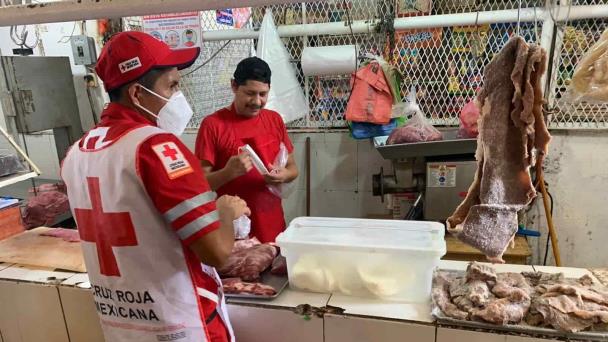 “Estamos haciendo una actividad en donde estamos haciendo entrega de mascarillas faciales y aplicando gel antibacterial a los locatarios del tianguis Jesús Taracena; también estuvimos en la Zona Luz y anteriormente en las inmediaciones del mercado José María Pino Suárez; es una actividad que se está realizando debido a la alza de los contagios COVID en los últimos días y la preocupación de Cruz Roja de mitigar la propagación de este virus”, explicó.