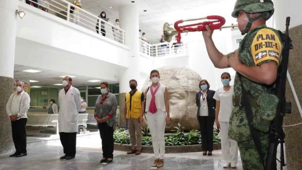 A través de un comunicado, se informó que este evento lo encabezó la titular de la Secretaría de Salud, Silvia Roldán Fernández, quien brindó además un minuto de aplausos a todo el personal del sector salud que durante estos cinco meses han trabajado en la primera línea de combate a la pandemia para salvar el mayor número de vidas.