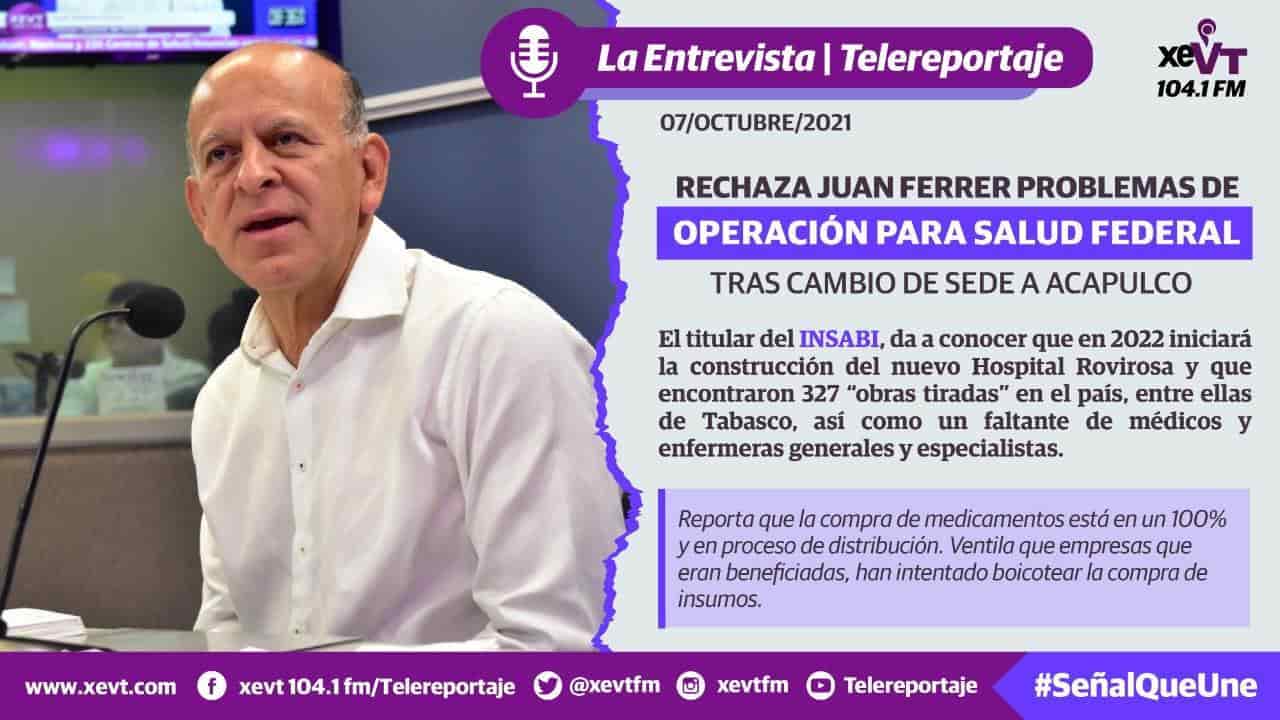 El titular del Instituto de Salud para el Bienestar (INSABI), Juan Antonio Ferrer Aguilar, descartó que existan problemas de operación por la migración de la Secretaría de Salud a Acapulco, Guerrero, en el plan de descentralización de las dependencias del Gobierno Federal.