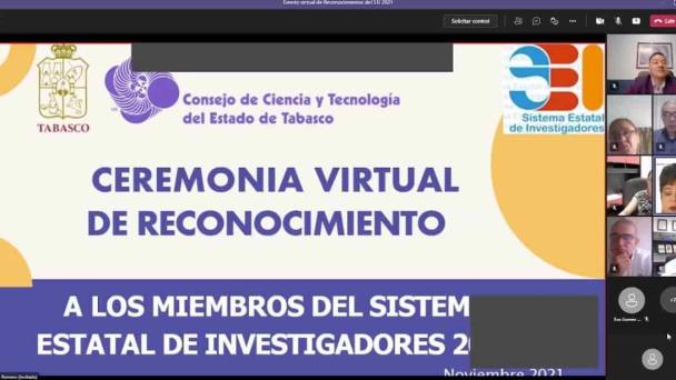 El Gobierno del Estado a través del Consejo de Ciencia y Tecnología del Estado de Tabasco (CCYTET), realizó la ceremonia virtual de reconocimiento a los miembros del Sistema Estatal de Investigadores (SEI) 2021.
