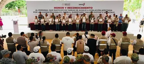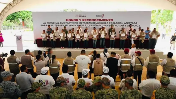 El gobernador Javier May realizó la entrega de reconocimientos a más de 700 trabajadores y personal militar que participaron en tareas de auxilio a la población afectada por las lluvias de octubre pasado en Hidalgo, Puebla, Querétaro, San Luis Potosí y Veracruz.