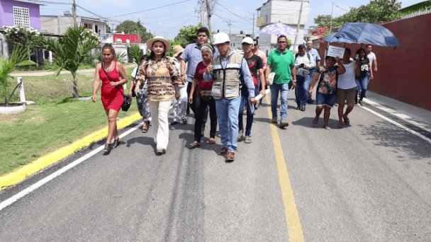 El Ayuntamiento de Centro entregó este jueves la reconstrucción de 16 mil 640.30 metros de pavimento asfáltico del camino principal del Anacleto Canabal tercera sección y Flores del Trópico.