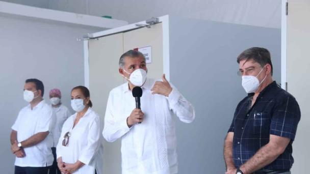Tras poner en marcha el Domo Hospitalario Temporal para la Atención de Enfermedades Respiratorias del ISSET, López Hernández dispersó los ‘cachitos’ entre el personal de este instituto médico que se encontraban presentes, donde uno de los beneficiarios fue el director general, Fernando Mayans.