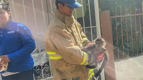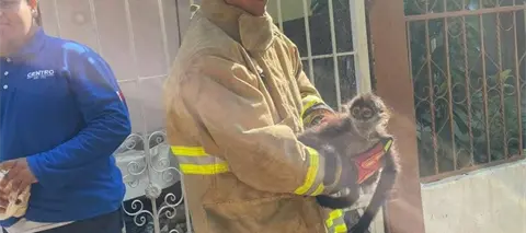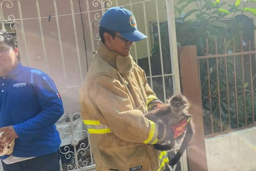 Personal de Protección Civil y Bomberos del municipio de Centro rescataron este domingo a un mono araña que se encontraba deambulando en la colonia Indeco.