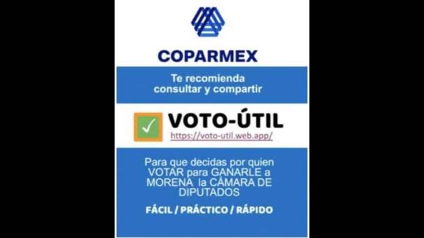La Confederación Patronal de la República Mexicana (Coparmex), se deslindó de la propaganda que llama a "votar para ganarle a Morena en la Cámara de Diputados", y en el que se aprecia el logotipo del patronato empresarial.